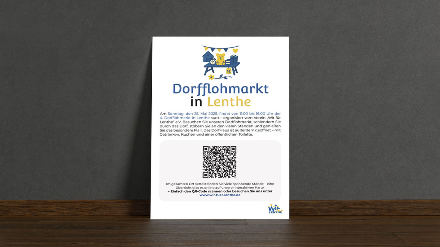 Seit 2019 begleite ich den Dorfflohmarkt in Lenthe gestalterisch und organisatorisch. Das Event findet alle zwei Jahre statt und hat sich inzwischen zu einer festen Größe im Dorfleben entwickelt. Ziel meiner Arbeit ist es, die Veranstaltung nicht nur visuell ansprechend, sondern auch digital möglichst zugänglich zu machen.
